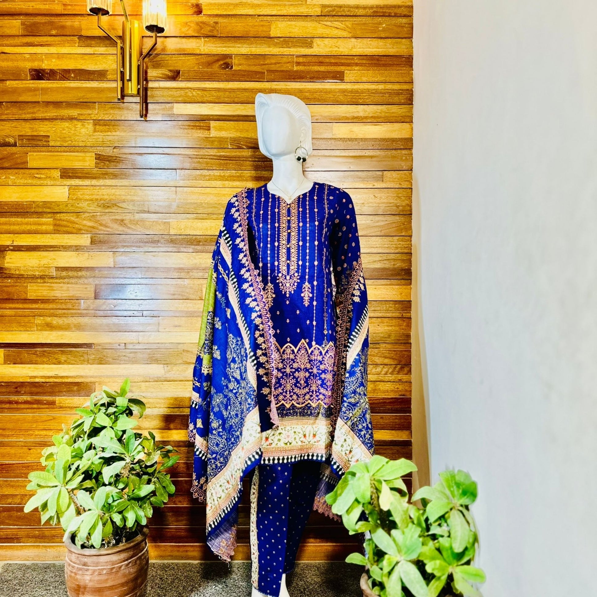 Enhance your winter wardrobe with this elegant ready-to-wear 3-piece khaddar suit. The shirt, in a rich brinjal purple shade, features heavy embroidery that adds intricate detail and a luxurious touch. Crafted from warm and breathable khaddar, both the shirt and trouser offer comfort and style perfect for the season.