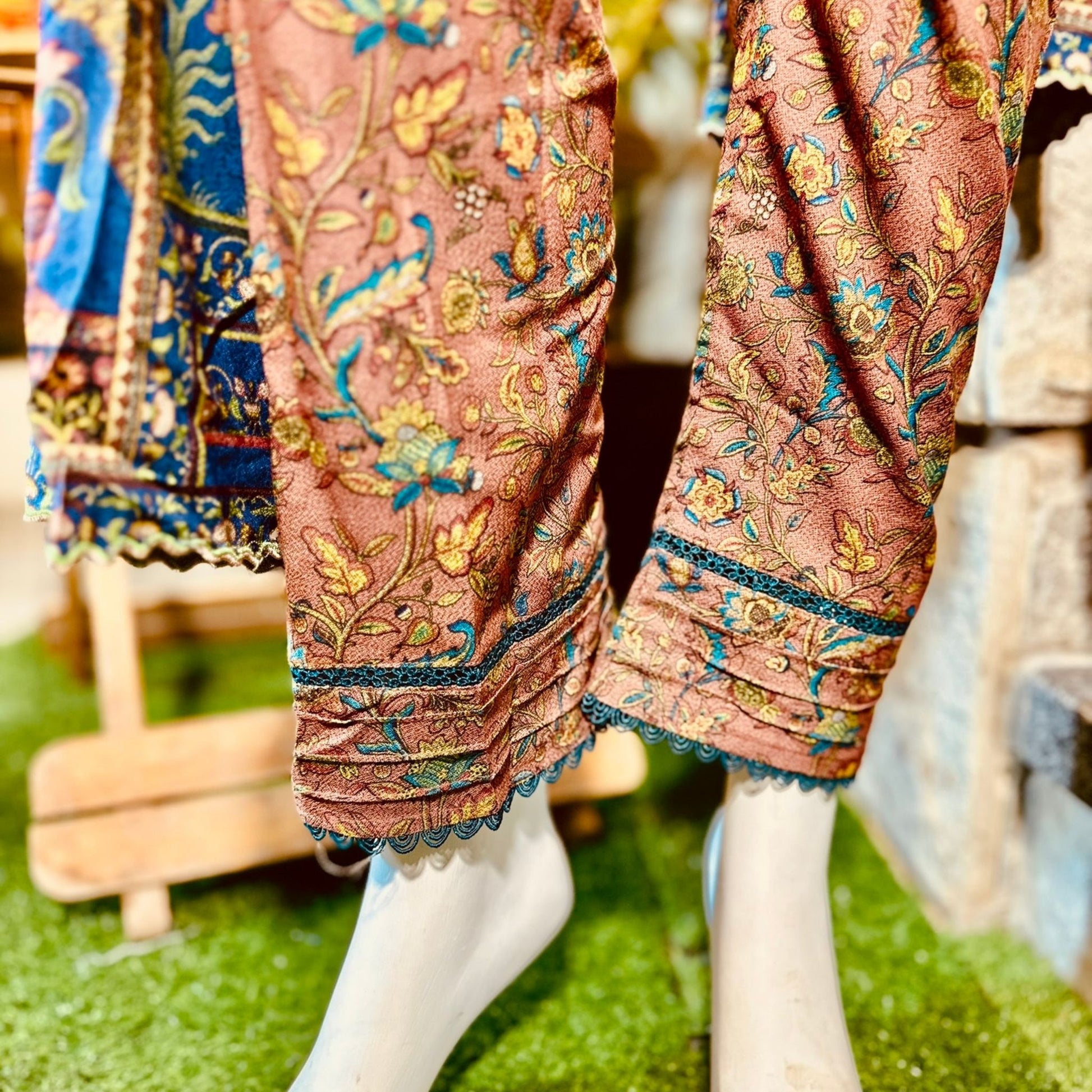 Featuring vibrant multi-colour digital prints on the shirt, shawl, and trouser, it blends traditional charm with a modern twist.